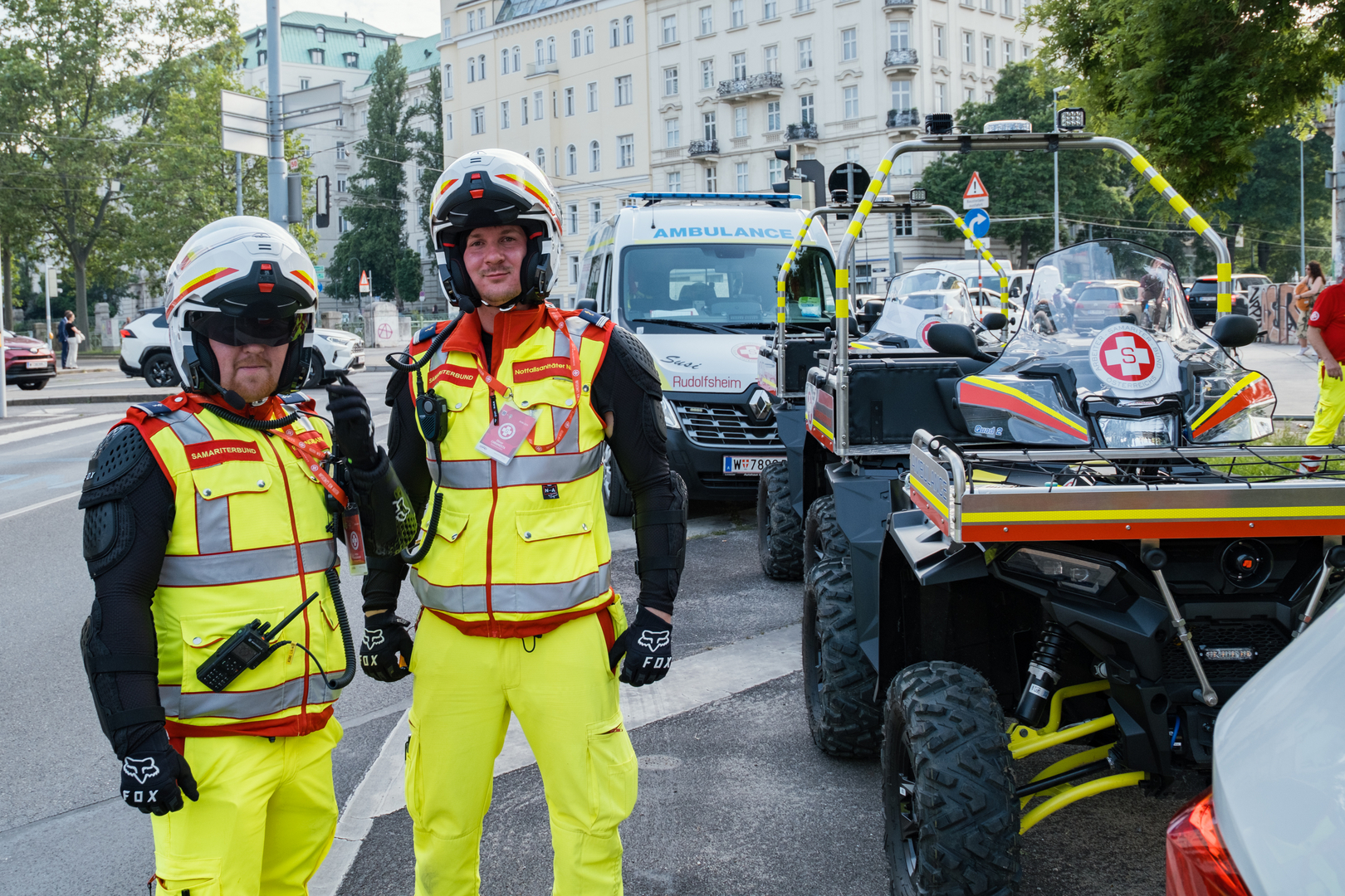 Bei Sportevents, Konzerten oder anderen großen, aber auch kleineren Veranstaltungen mit vielen Besucher:innen sind unsere Rettungs- und Notfallsanitäter:innen im Einsatz. Je nach Größe der Veranstaltung werden sie dabei auch von Notärzt:innen unterstützt. Gemeinsam sorgen die Teams vor Ort für die medizinische Versorgung der Besucher:innen und Teilnehmer:innen. Bestens geplante logistische Abläufe und klare Einsatzstrukturen sind bei solchen Großevents ebenso gefragt wie unser medizinisches Wissen. Unsere Sanitäter:innen sind je nach Art der Veranstaltung nicht nur in Ambulanzräumen oder -zelten im Einsatz. Vielmehr ist unser medizinisches Personal bei Bedarf auch auf Quads oder Rangers, Segways, Motorrädern und auch Fahrrädern für die Sicherheit der Besucher:innen unterwegs. Egal, welche Veranstaltung Sie planen, mit uns sind Sie sicher. Samariter:innen betreuen zum Beispiel das Donauiselfest, den Vienna City Marathon die Fußballspiele der Österreichischen Nationalmannschaft im Wiener Ernst-Happel-Stadion und viele weitere Großveranstaltungen in Wien. Aber natürlich können Sie auch bei kleineren Veranstaltungen auf unsere Expertise zählen.